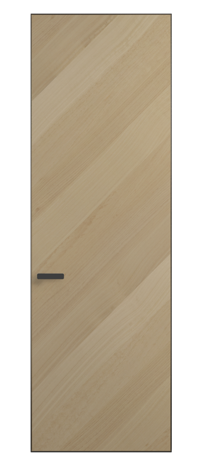 Полотно Rift в скрытом алюминиевом коробе становится полноценным элементом декора. В коллекции представлено 9 моделей дверей в высоте до 3 метров. Рисунок раскладки шпона варьируется от простого до сложного. «Рубашка» для каждого полотна подбирается вручную по цвету, текстуре и фактуре.