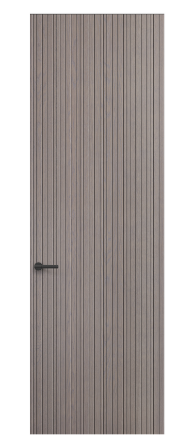SELECT — коллекция минималистичных дверей с фрезеровкой по натуральному шпону. Рельеф на поверхности полотна создаёт игру света и тени, добавляя пространству динамичности и визуального объёма. Двери SELECT в сочетании со стеновыми панелями и мебельными фасадами, повторяющими лаконичный дизайн, создают единое стилевое решение.